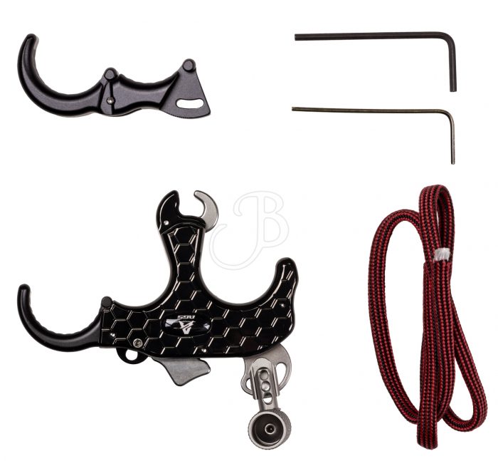 Trigger release with first and second trigger adjustment via lockable screws, trigger tilt adjustment and a release accuracy like the best releases on the market