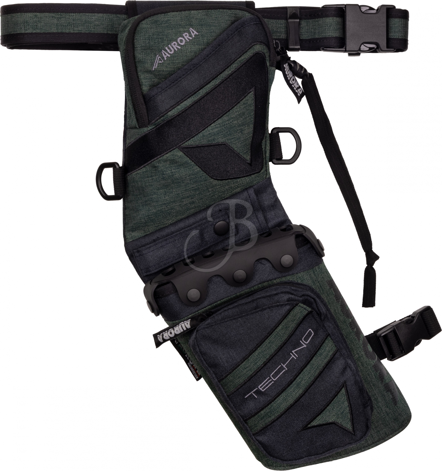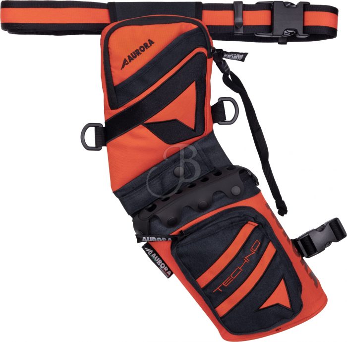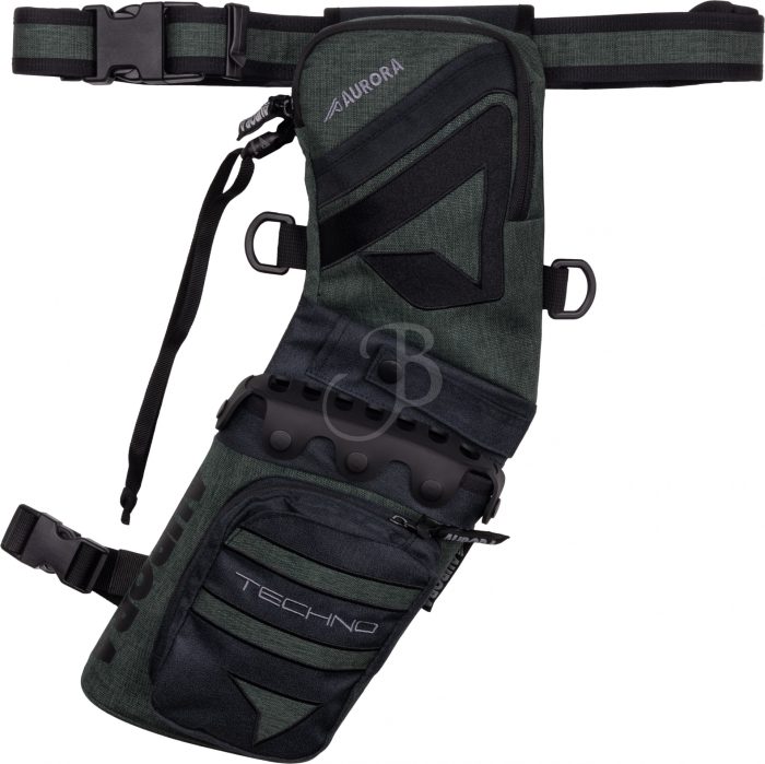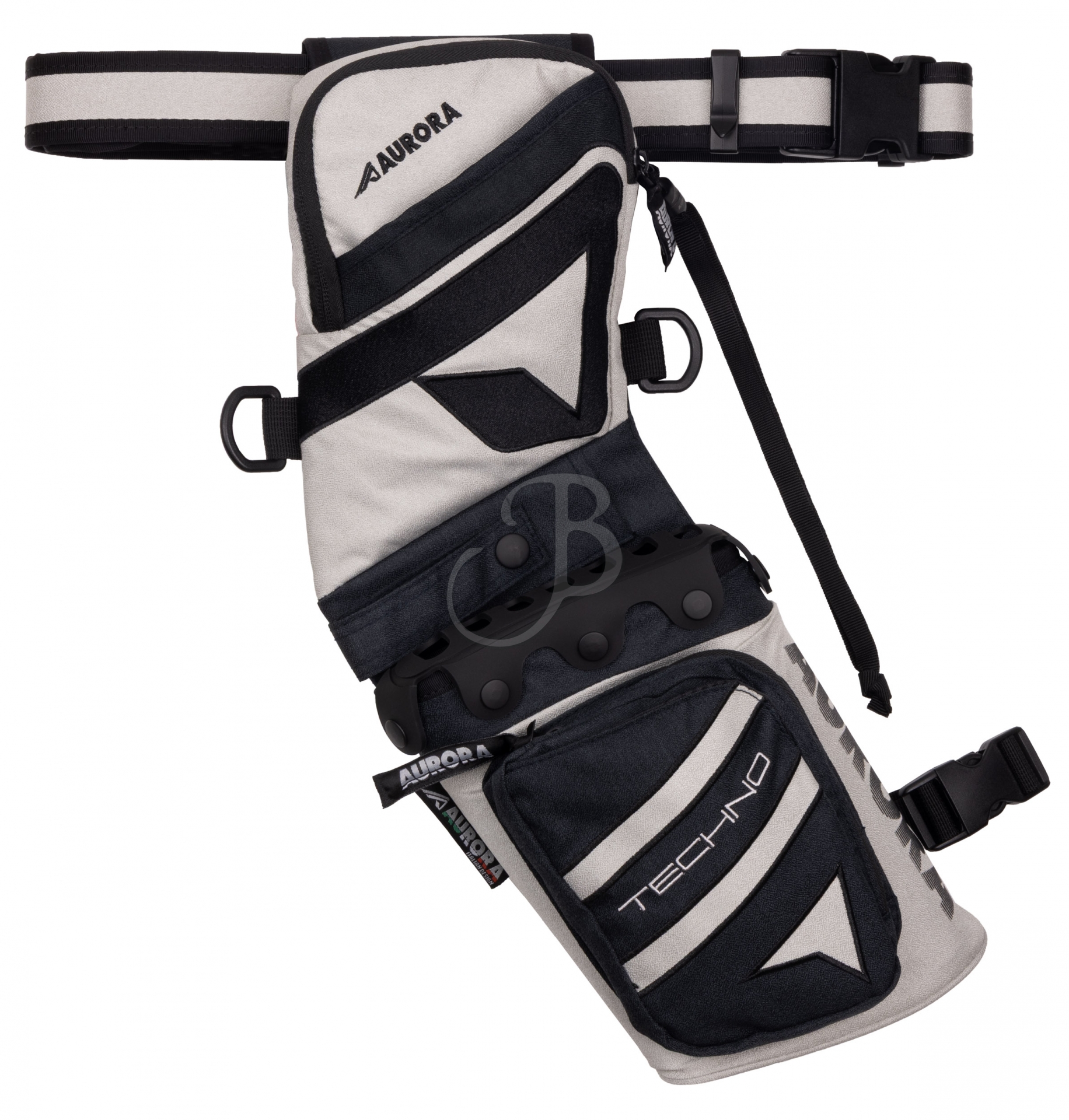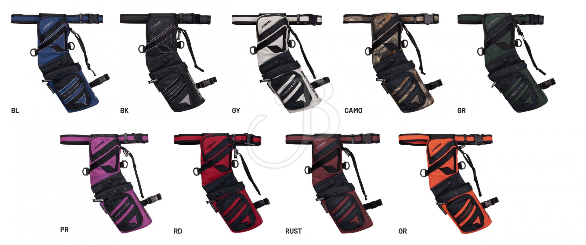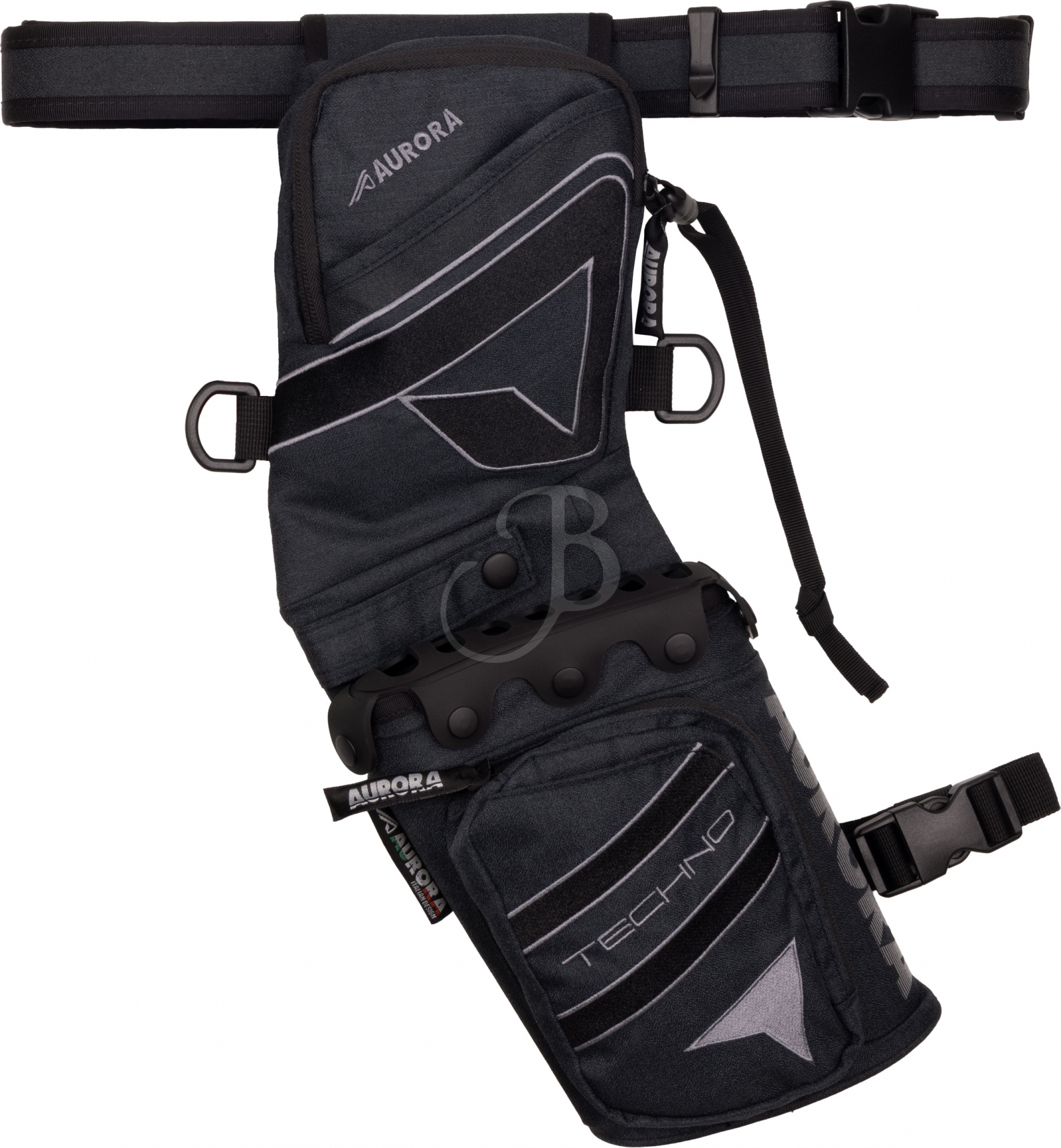 The choice quiver style for target, 3D, and field archery, the Techno Quiver from Aurora is an affordable option that is packed with accessories and features of higher price point quivers. Available in a wide range of colors, it comes with a matching belt and thigh strap for a secure connection when on the line, and includes a spare arrow separator, optional rubber quiver dividers, and magnetic clip for your arrow puller and towel. The body of the quiver includes both large and small pockets for all your shooting accessories.