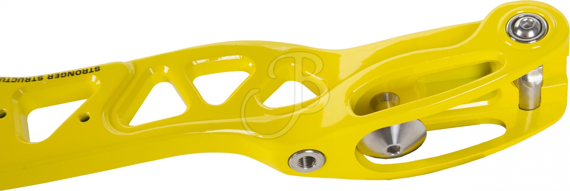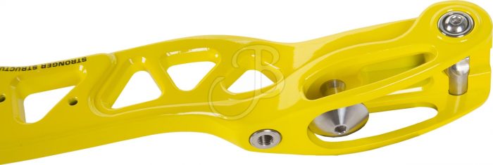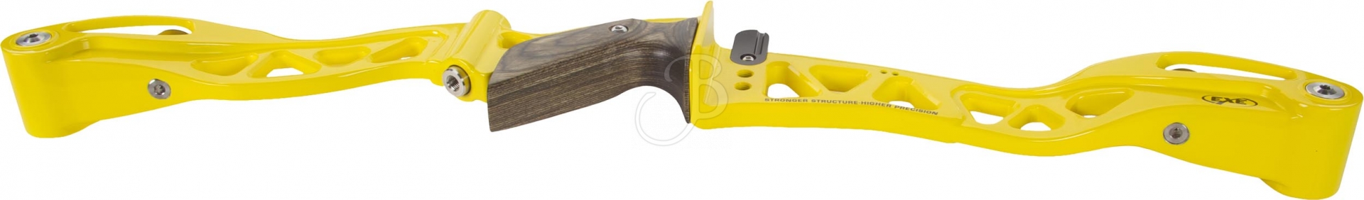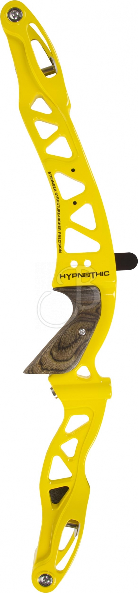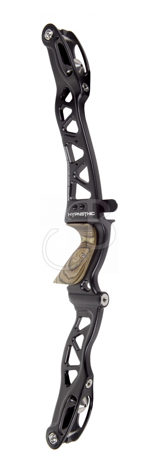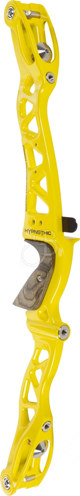 The EXE HYPNOTIC riser is very well balanced and gives an optimal shooting feeling. The 6061 aluminium structure gives high stiffness and the design is harmonious and modern. The riser is equipped with a classic ILF throwing limb mount, adjustment function of the throwing limv alignment, a wooden grip and numerous threaded bushings on both sides for stabilisers and vibration dampers.