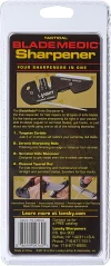 The BlademedicTM Knife Sharpener is the first responder for field repairs on all types of knife blades. It’s like having an entire sharpening kit right in your pocket – able to tackle regular or serrated blades, gut hooks, hunting, fishing, – just about any knife using one or all of the following elements:
